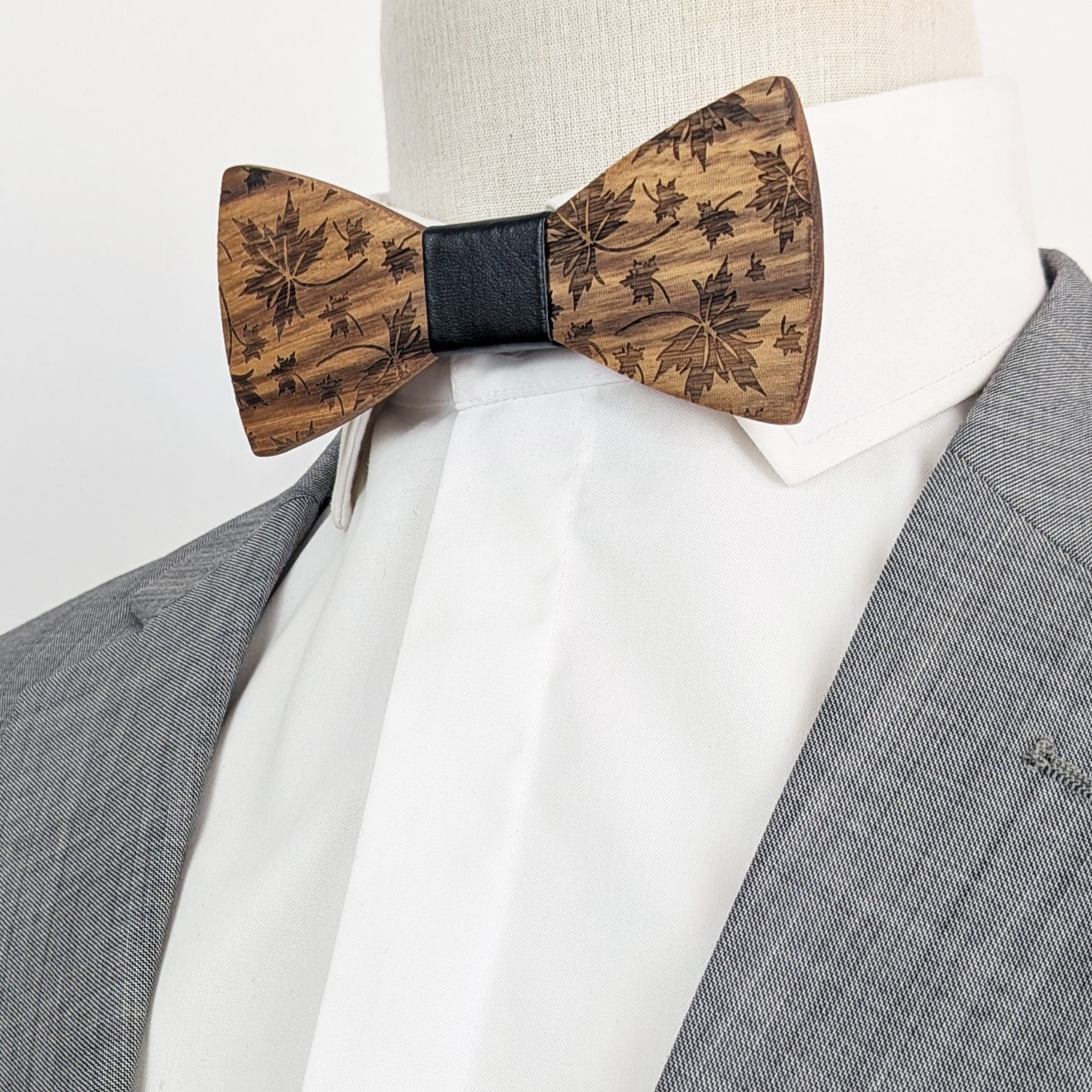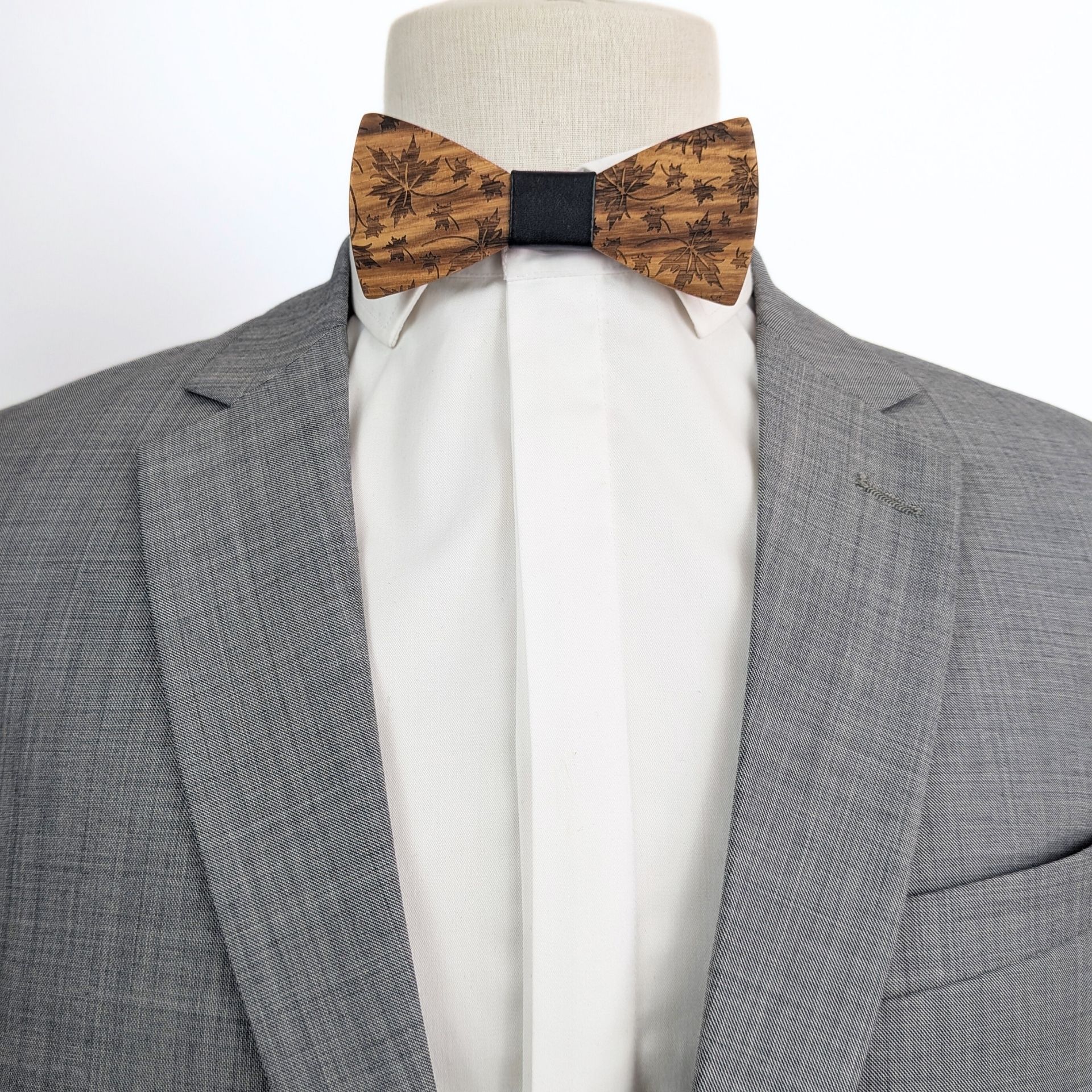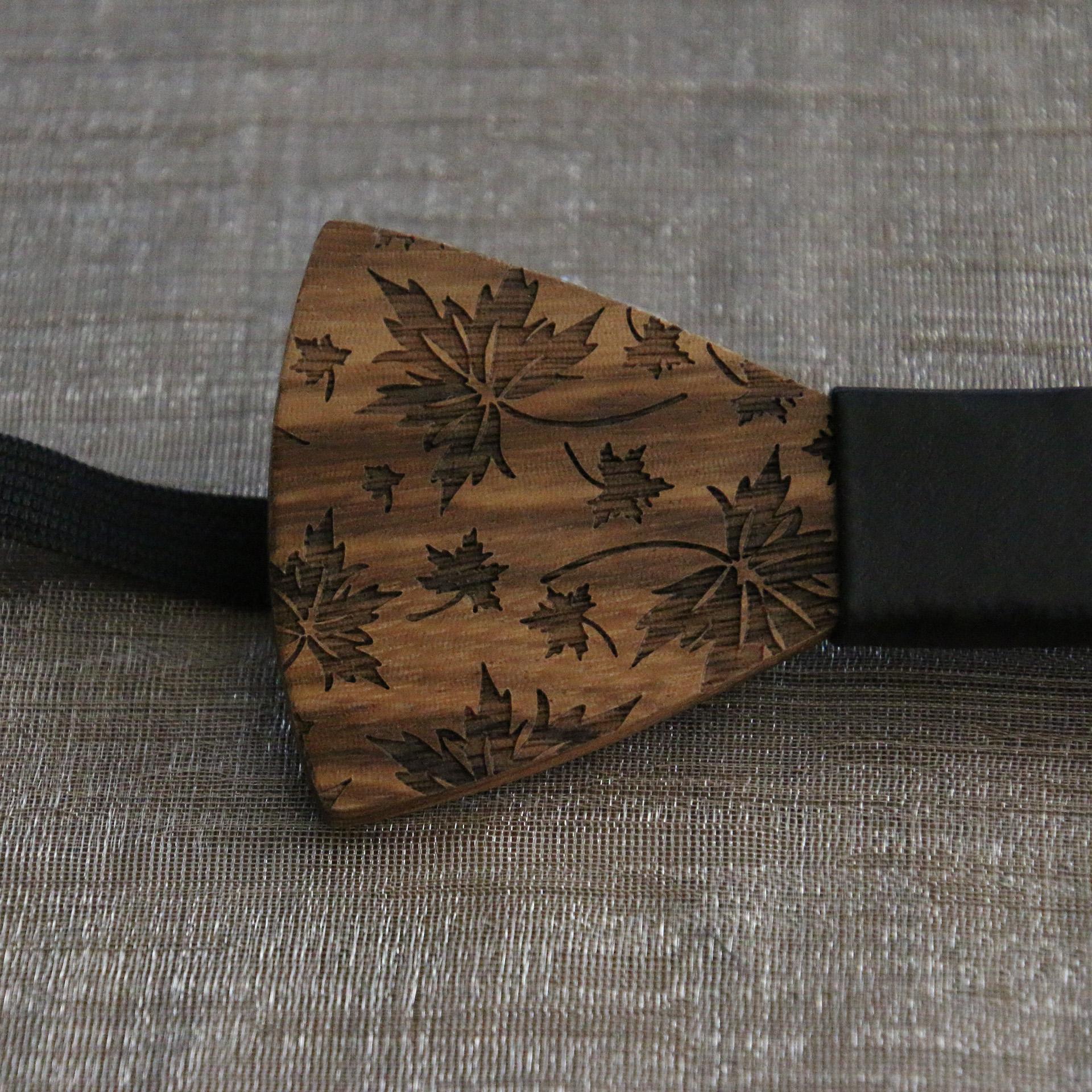 Motif : Nœud papillon bois feuille automne avec motif et nœud noir au centre