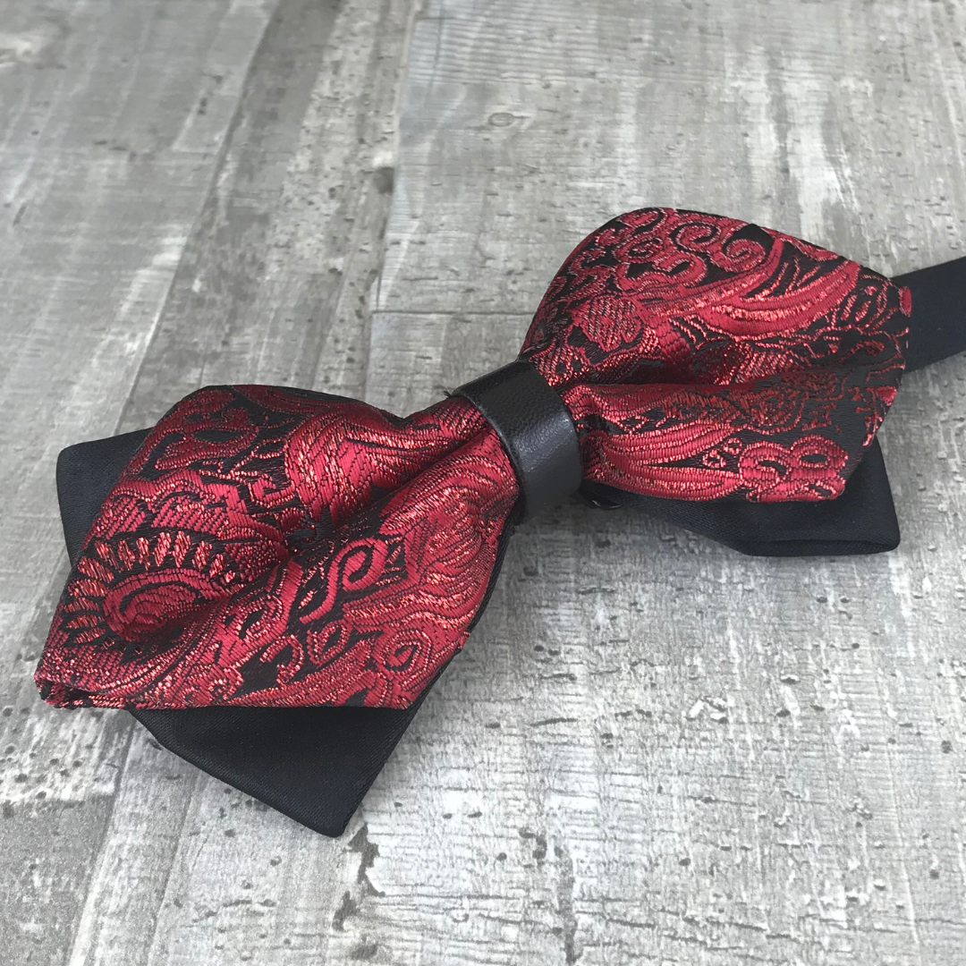 Motif : Nœud papillon festif bordeaux et noir pailleté à motifs cachemire